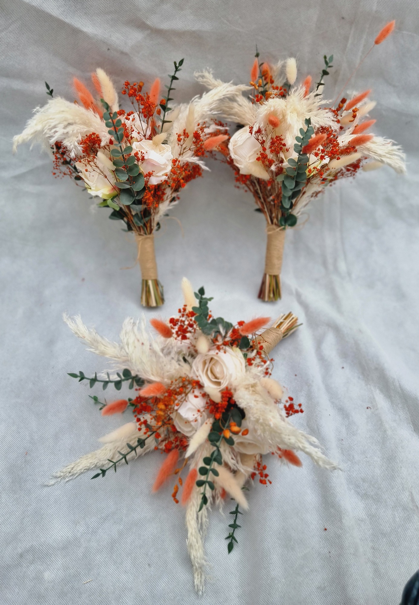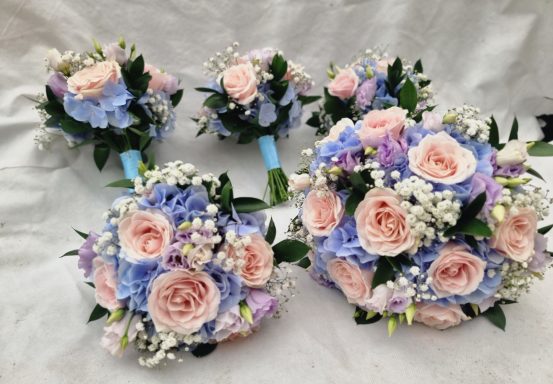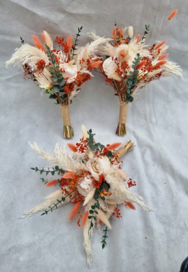 Smaller than the bride’s bouquet, these charming hand-tied or cluster bouquets are the perfect finishing touch to beautifully complement the dresses and the entire wedding theme. It’s those little details that truly tie everything together on such a special day!